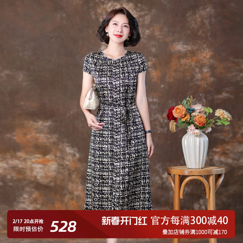 杭州真丝连衣裙桑蚕丝气质温柔风印花妈妈显瘦裙子女2023新款夏季