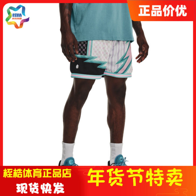 马刺球裤高街刺绣篮球短裤美式五分网眼刺绣大口袋拉链运动黑白