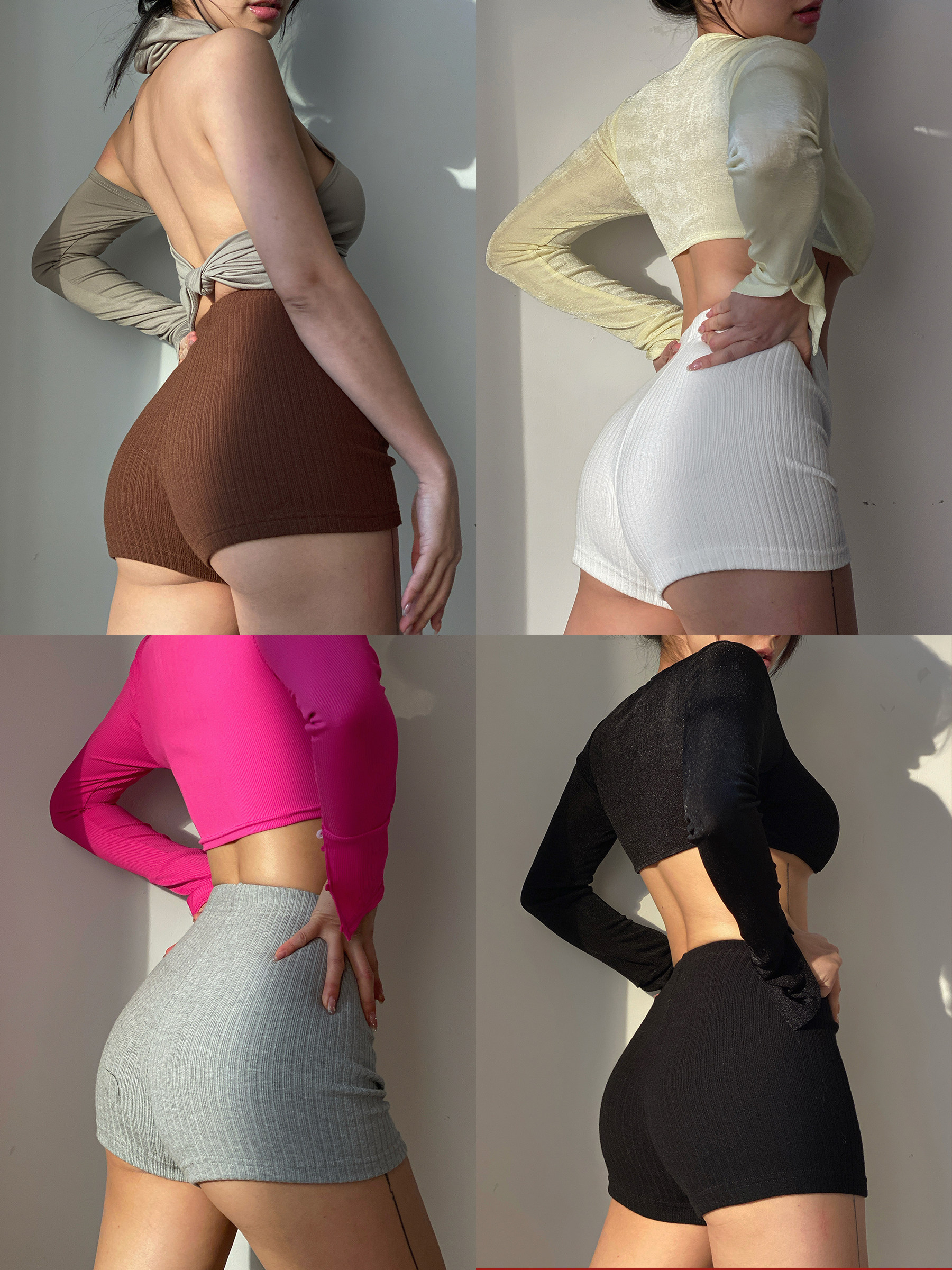 DINDI 弹力打底运动短裤针织包臀女春季新款欧美性感高腰纯色紧身