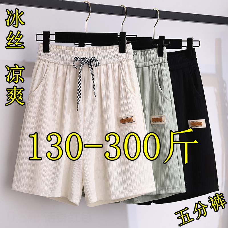 300斤特大码冰丝五分裤女夏季薄款200胖mm加肥宽松高腰休闲短裤子