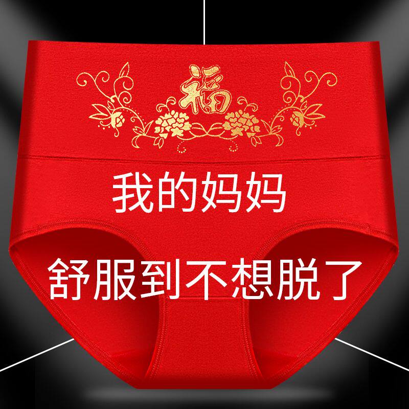 本命年红色内裤女纯棉全棉中老年人妈妈高腰收腹胖mm大码短裤衩龙