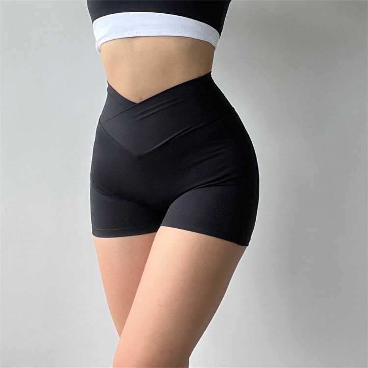 交叉高腰瑜伽紧身运动透气短裤女提臀三分速干跑步紧身健身裤