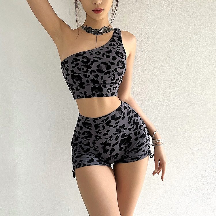 性感辣妹健身套装单肩运动短裤保温提臀训练短裤两件套弹力外穿女
