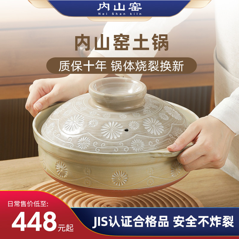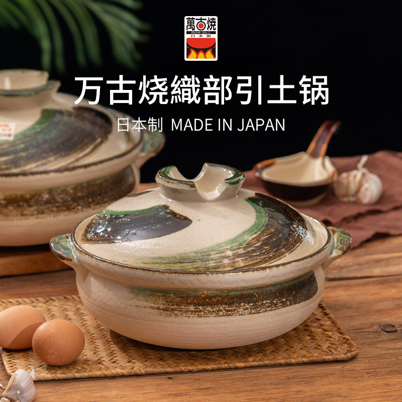 [陶瓷王]日本进口万古烧银峯三岛耐高温陶土锅砂锅带盖陶板燃气灶