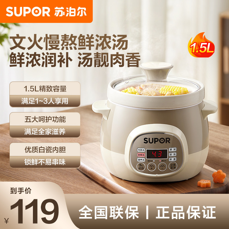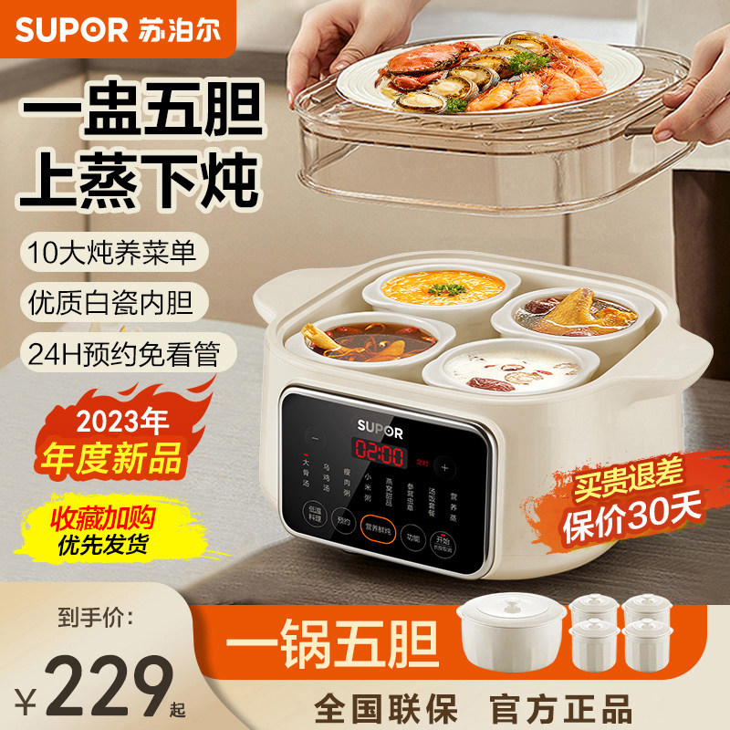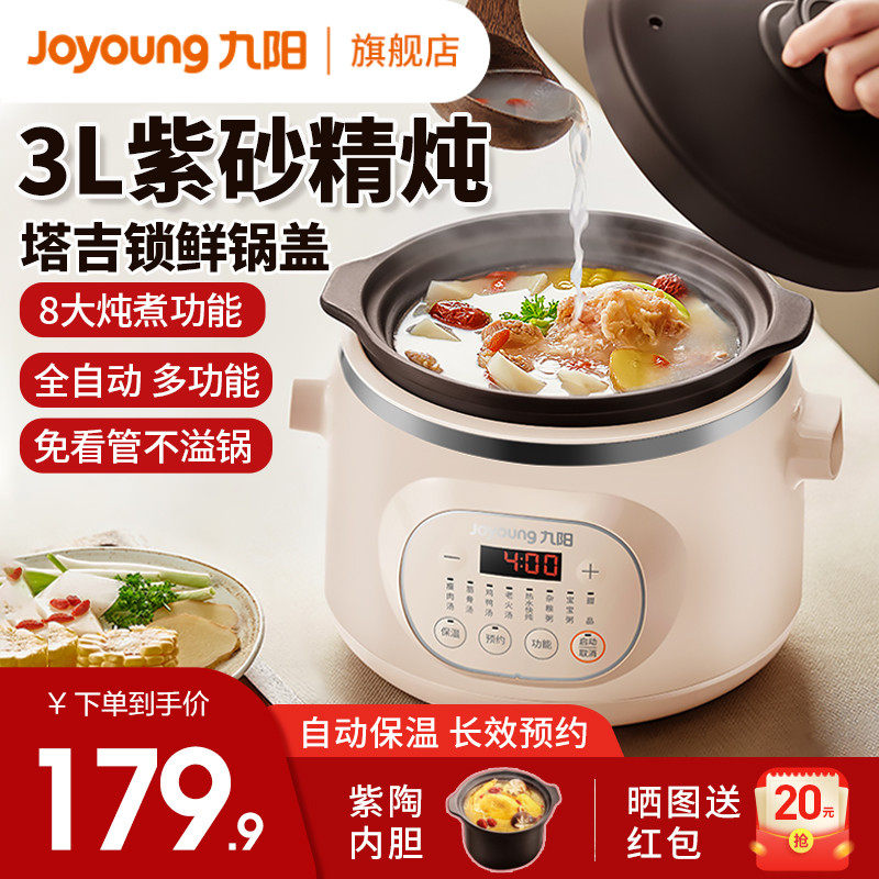 苏泊尔电炖锅小煲汤锅全自动砂锅紫陶家用1人2陶瓷煮粥隔水电炖盅