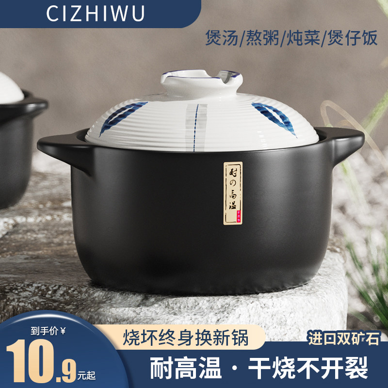 砂锅煲家用耐高温干烧不裂煲仔饭炖汤煲燃气煤气灶专用小陶瓷沙锅