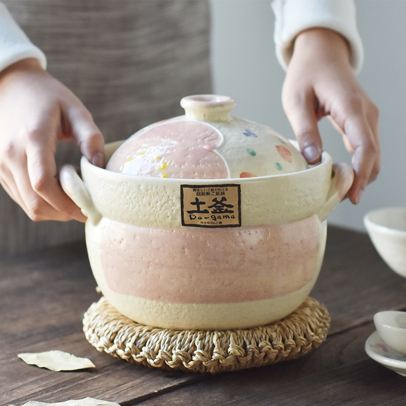 小森林日本进口万古烧砂锅煲汤炖锅家用燃气双盖沙锅陶瓷土锅粉色
