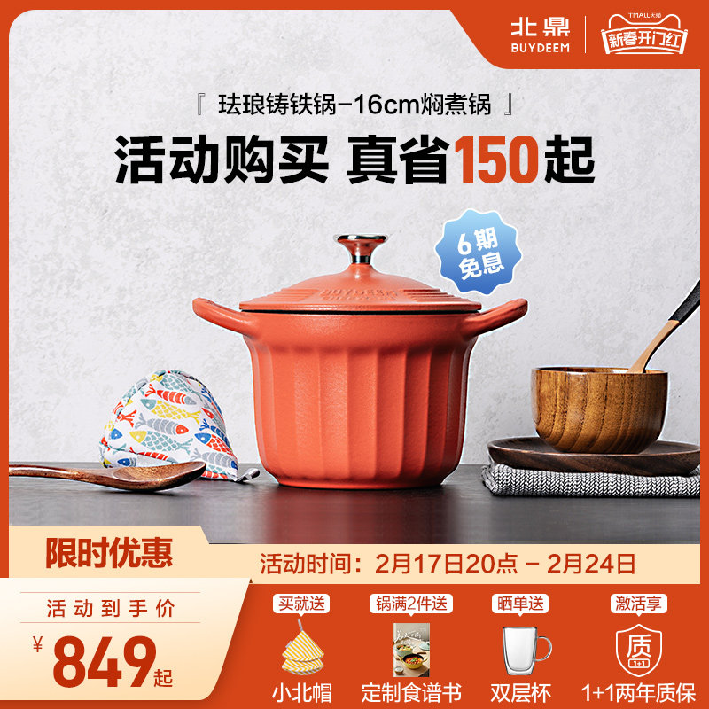北鼎珐琅锅铸铁煲汤家用焖炖锅多功能砂锅进口平底锅具套装煮锅