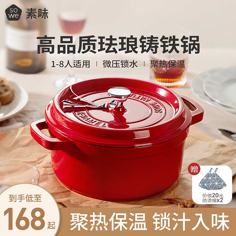 sowe珐琅锅炖锅铸铁家用炖盅汤盅砂锅陶瓷汤锅焖煮不粘搪瓷双耳锅