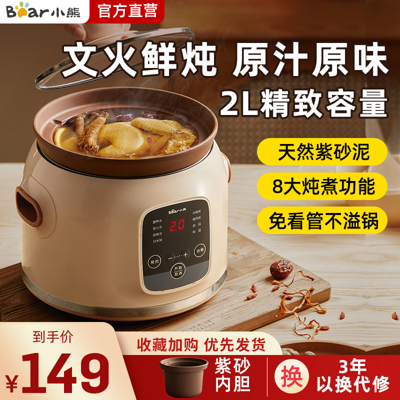 小熊紫砂锅煲汤锅隔水炖盅家用全自动大容量电炖锅多功能官方旗舰