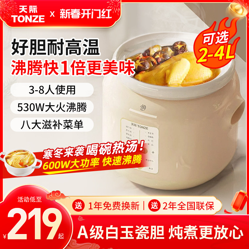 天际智能电砂锅2-6人全自动煲汤煮粥焖炖炒锅多功能火锅3-4-5L