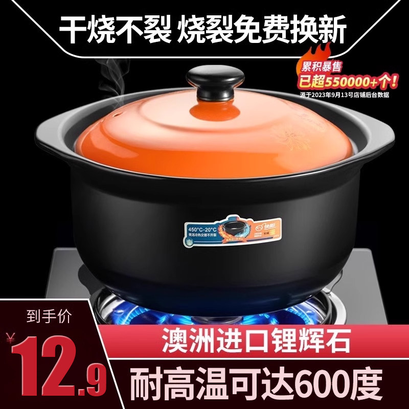 2024砂锅炖锅家用燃气耐高温干烧不裂陶瓷煲仔煲汤沙锅煤气灶专用