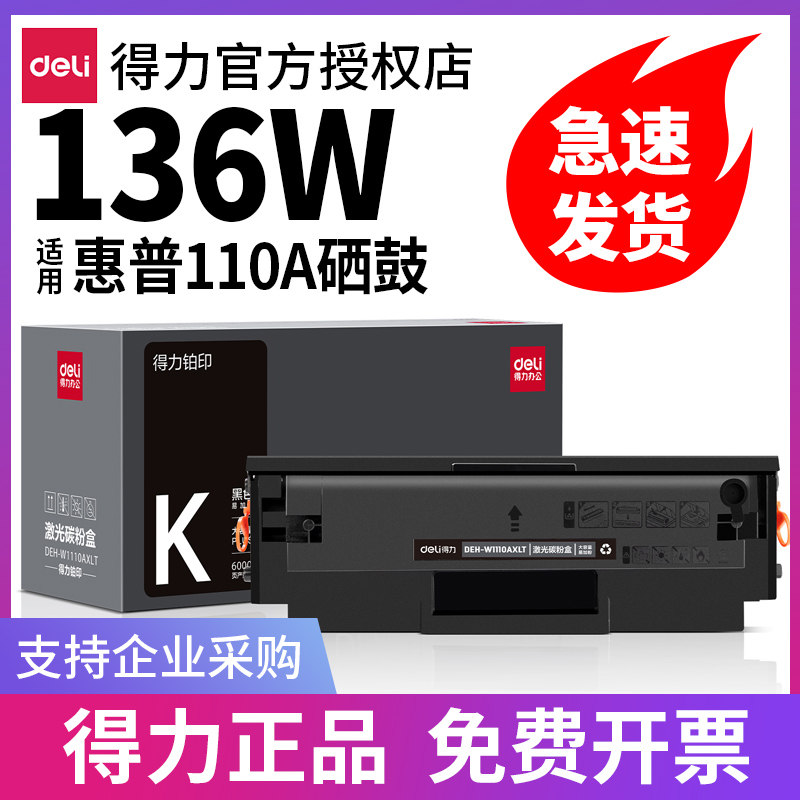 得力适用惠普136w 136wm硒鼓hp Laser MFP 136a 136nw 108a 138pnw打印机墨盒碳粉盒晒鼓110a碳粉w1110a 108w