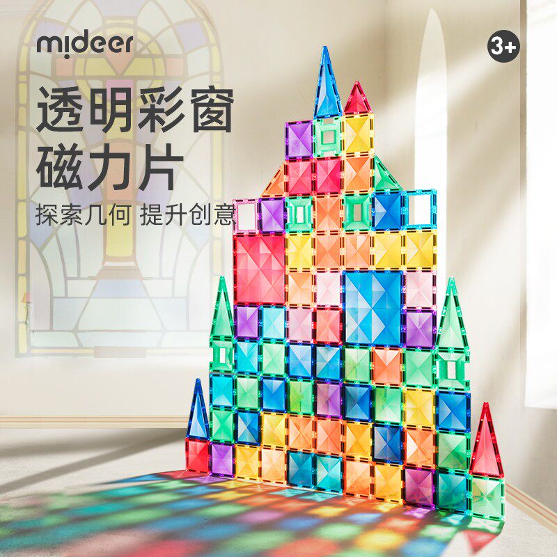 mideer弥鹿彩窗磁力片轨道管道彩窗积木拼装儿童益智玩具强磁力棒