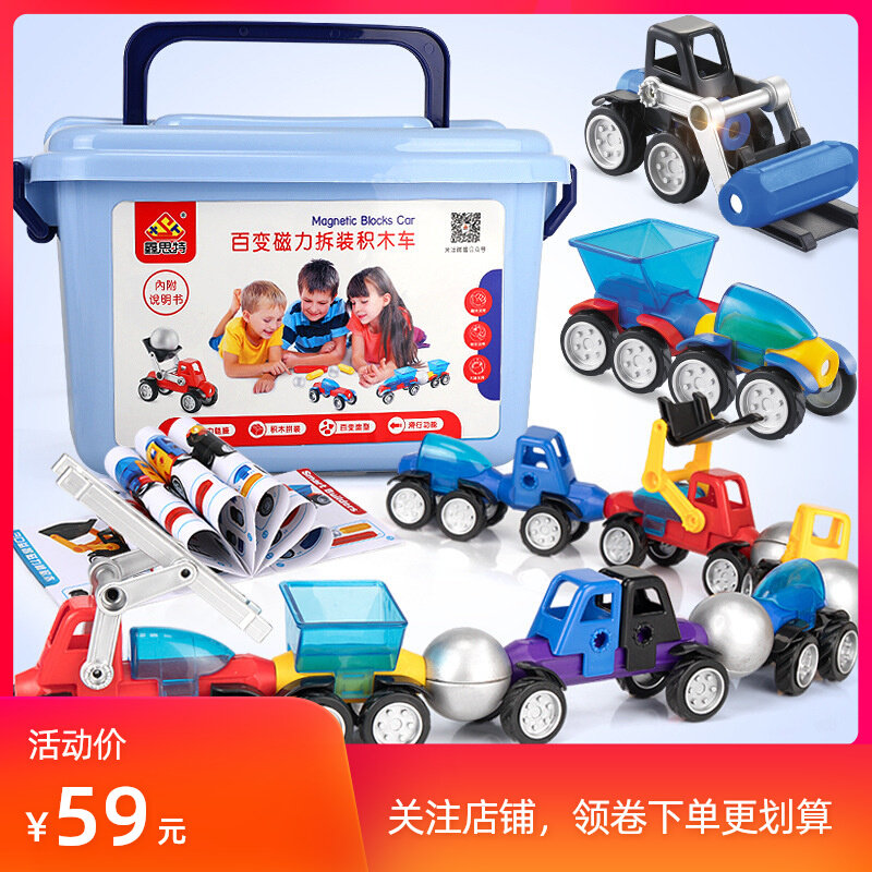 证叮宝呗惺拼装磁力棒组合车3D拼搭积木儿童玩具工程车