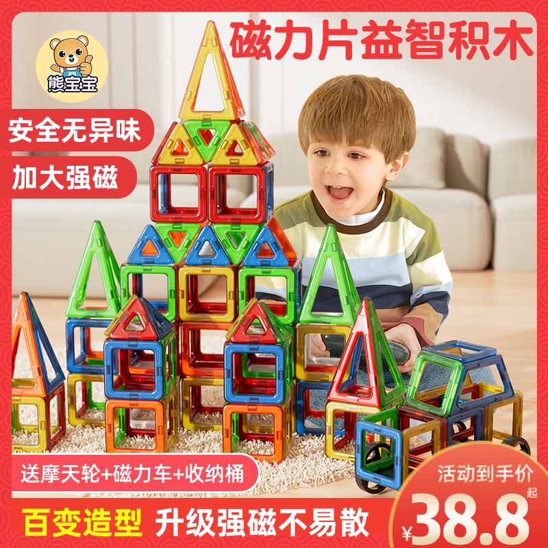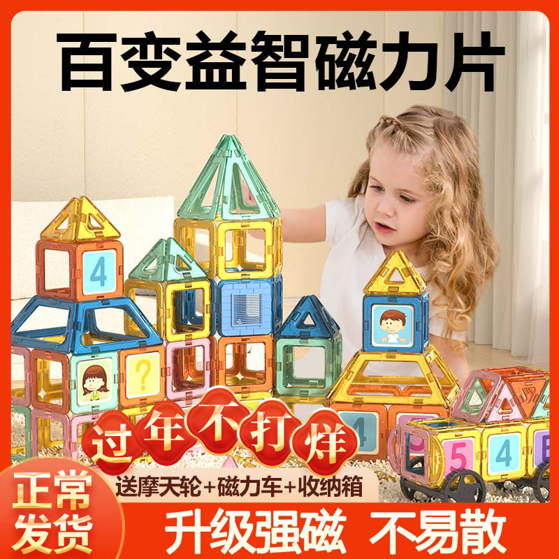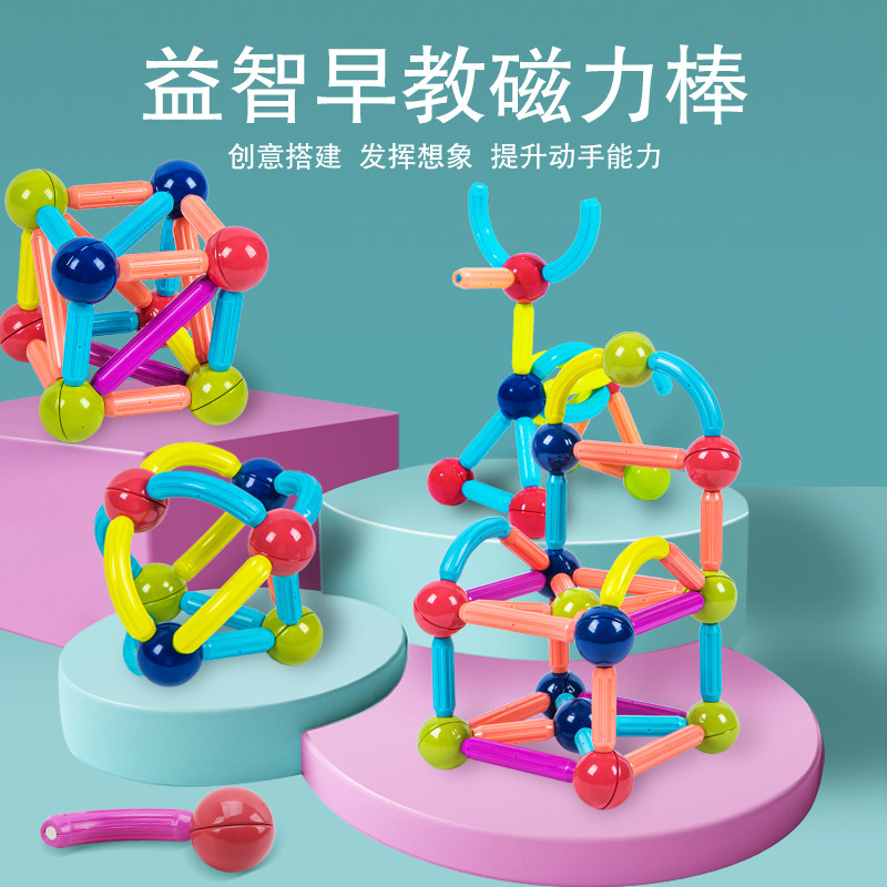百变磁力棒片男孩女孩2岁宝宝智力拼图6儿童益智积木拼装磁铁玩具