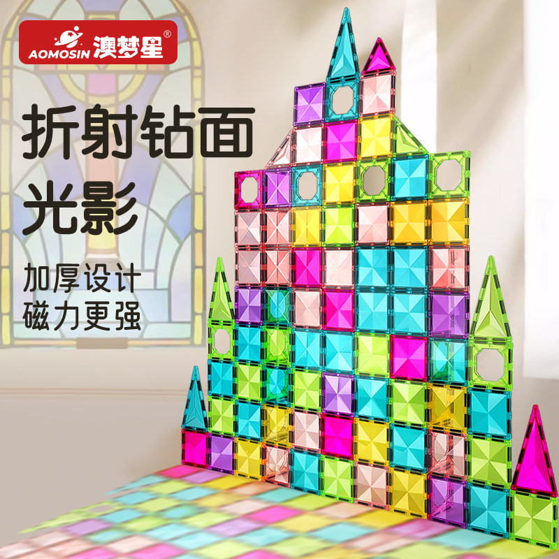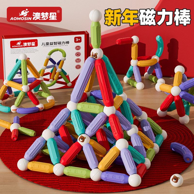 澳梦星儿童磁力片彩窗积木铁磁吸男女孩拼图磁铁棒圣诞节礼物玩具