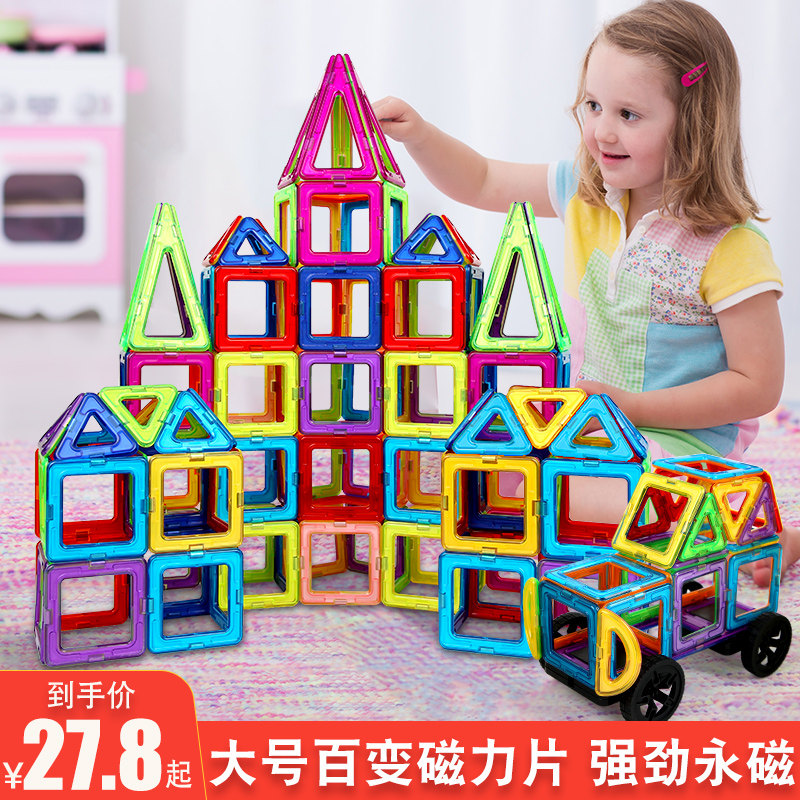 磁力片儿童益智玩具积木拼装纯磁铁吸铁石贴片棒拼图男孩女孩大号