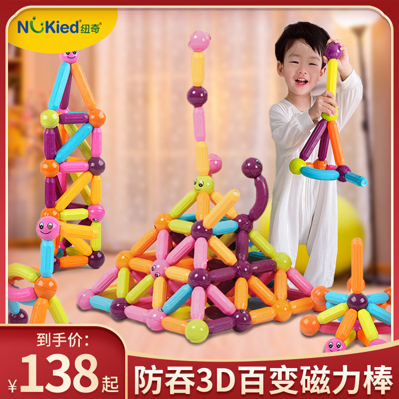 纽奇百变大颗粒磁力棒儿童益智玩具积木磁铁磁性早教拼装宝宝玩具