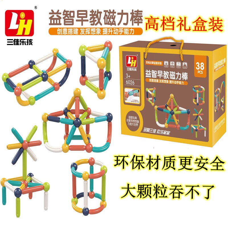 三佳百变磁力棒幼儿童积木拼装益智宝宝早教磁铁3岁男孩5女孩玩具