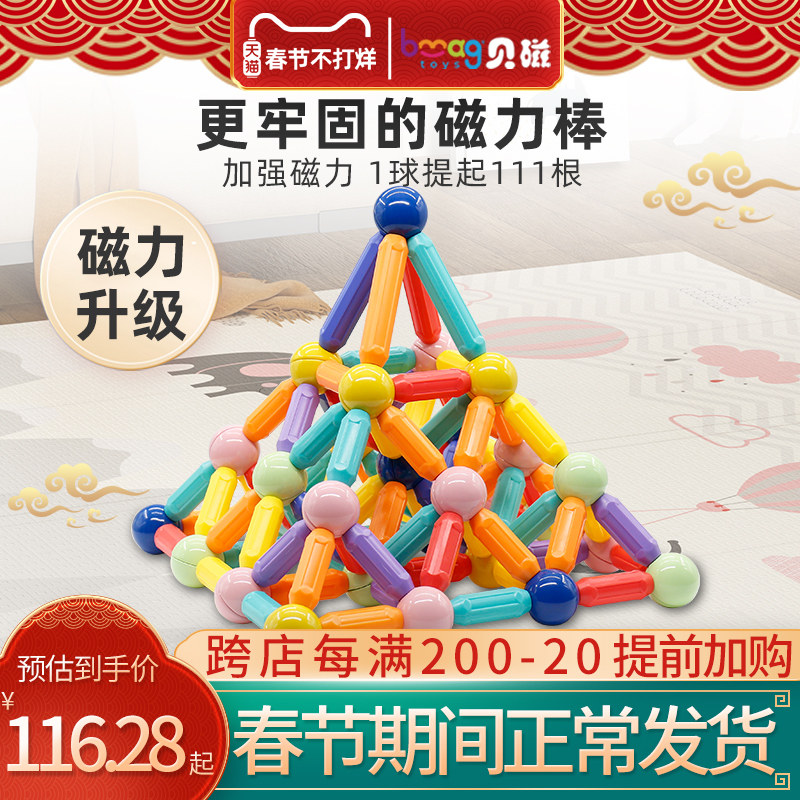贝磁百变磁力棒片积木强磁铁儿童益智拼装宝宝早教2岁6男女孩玩具