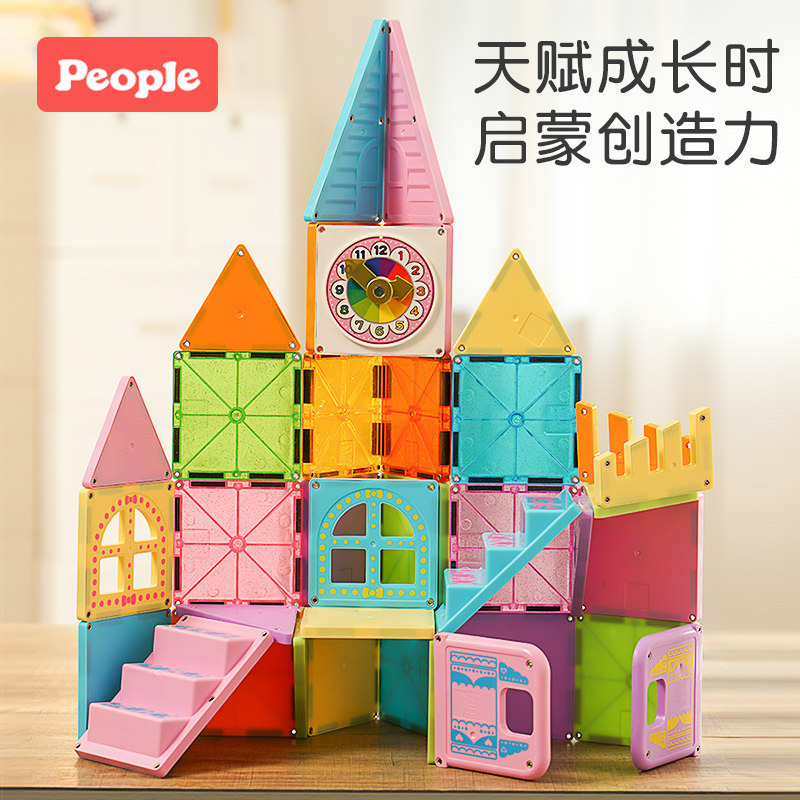 people磁力片积木磁力棒男女孩拼装拼插彩装玩具magnatiles磁力片