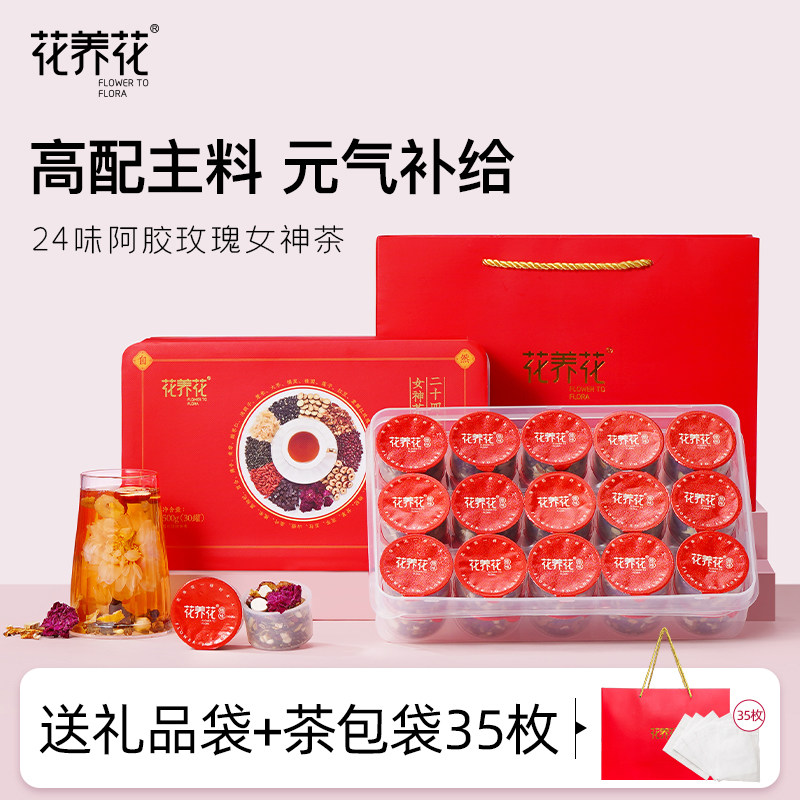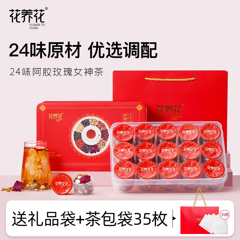 花养花24味阿胶玫瑰女神茶红枣桂圆枸杞围炉煮茶妇女节礼品女神节