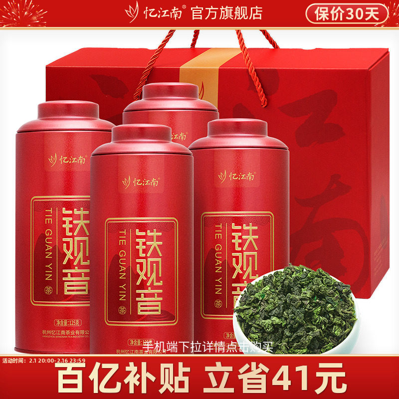 忆江南茶叶礼盒铁观音乌龙茶500g礼盒装*4罐送人长辈礼品过节送礼