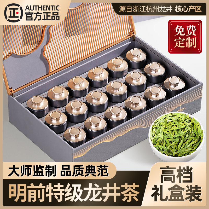 龙井茶新茶特级杭州绿茶明前茶小罐茶叶礼盒装年货送礼长辈礼品茶