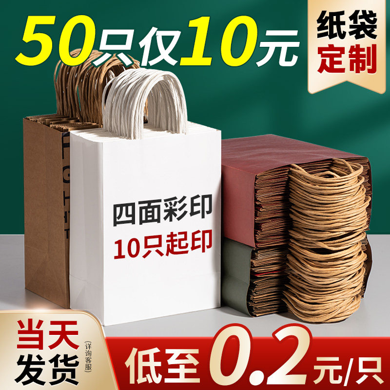 牛皮纸袋礼品袋包装红色手提袋定制印刷logo烘焙外卖奶茶袋子批发