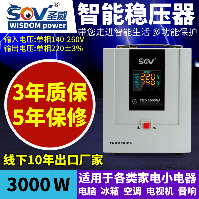 sov圣威空调稳压器220V家用大功率5000W冰箱单相交流全自动调压器