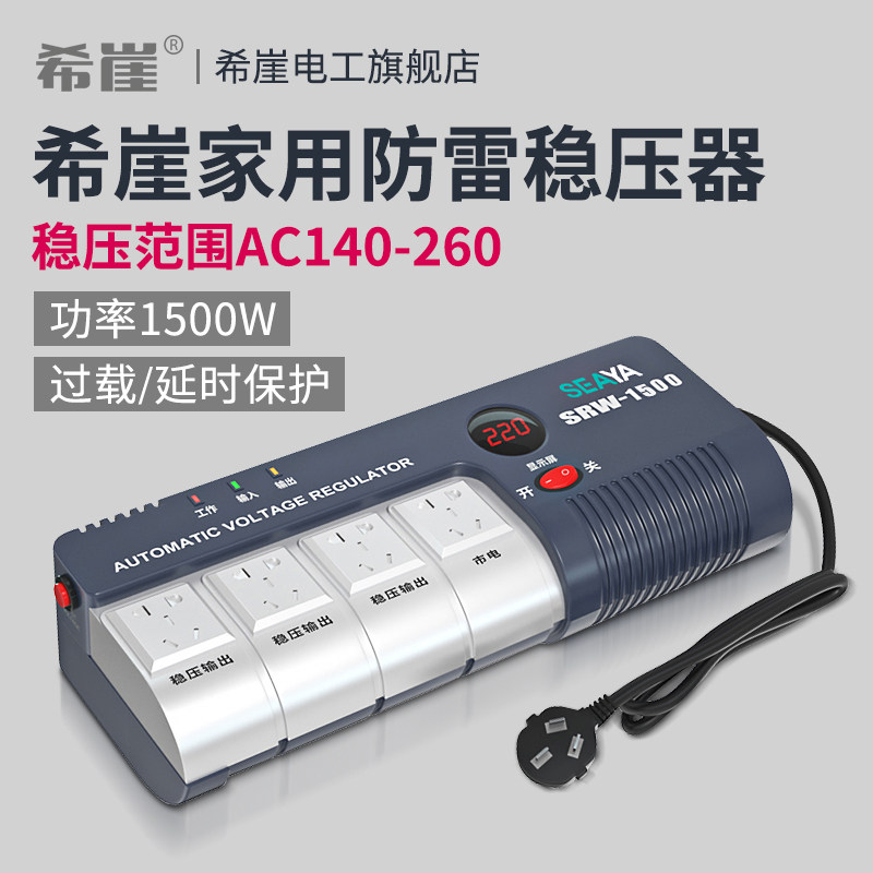 希崖1500W交流稳压器家用220V全自动单相电脑电视小型排插式插座