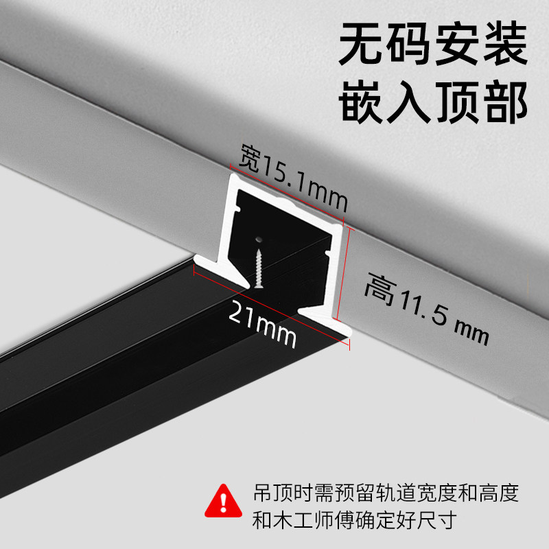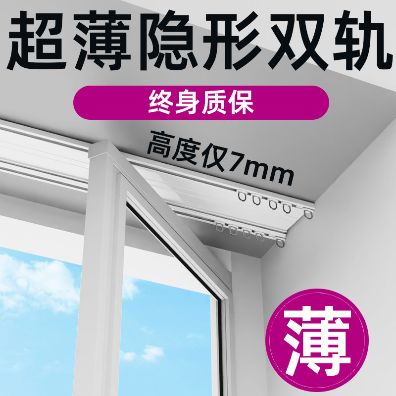 超薄窗帘轨道极窄隐形顶装飘窗双轨内开窗滑道窗帘盒窗帘杆静音顶