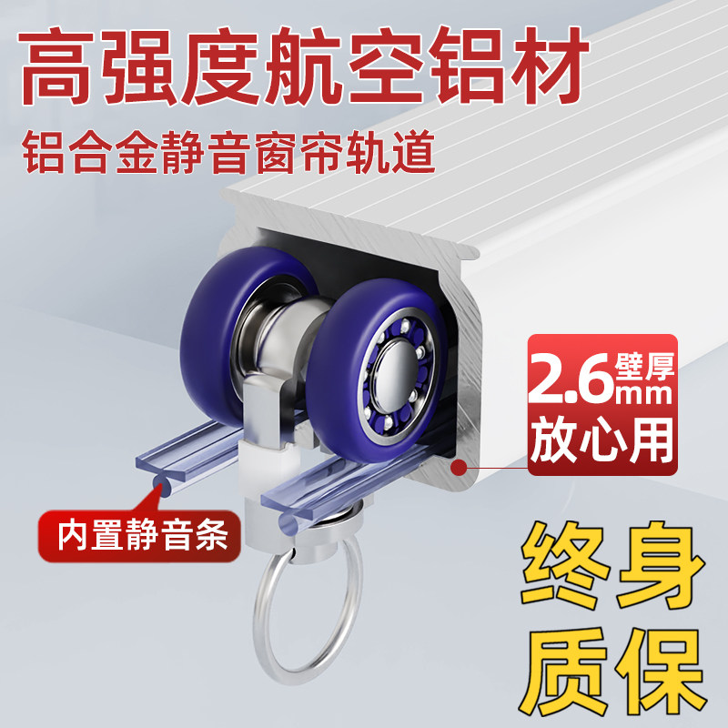 窗帘轨道滑轮双轴承轮单轨道窗帘滑轨静音铝合金挂钩飘窗侧装顶装