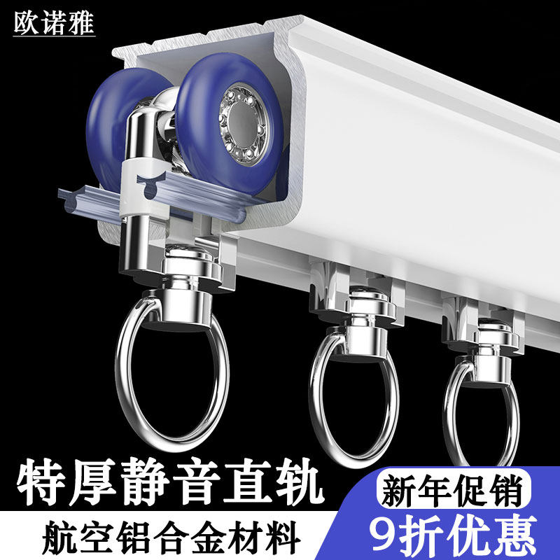 特厚铝合金窗帘轨道滑轮滑轨滑道直弯导轨单双顶侧装静音轨道轴承