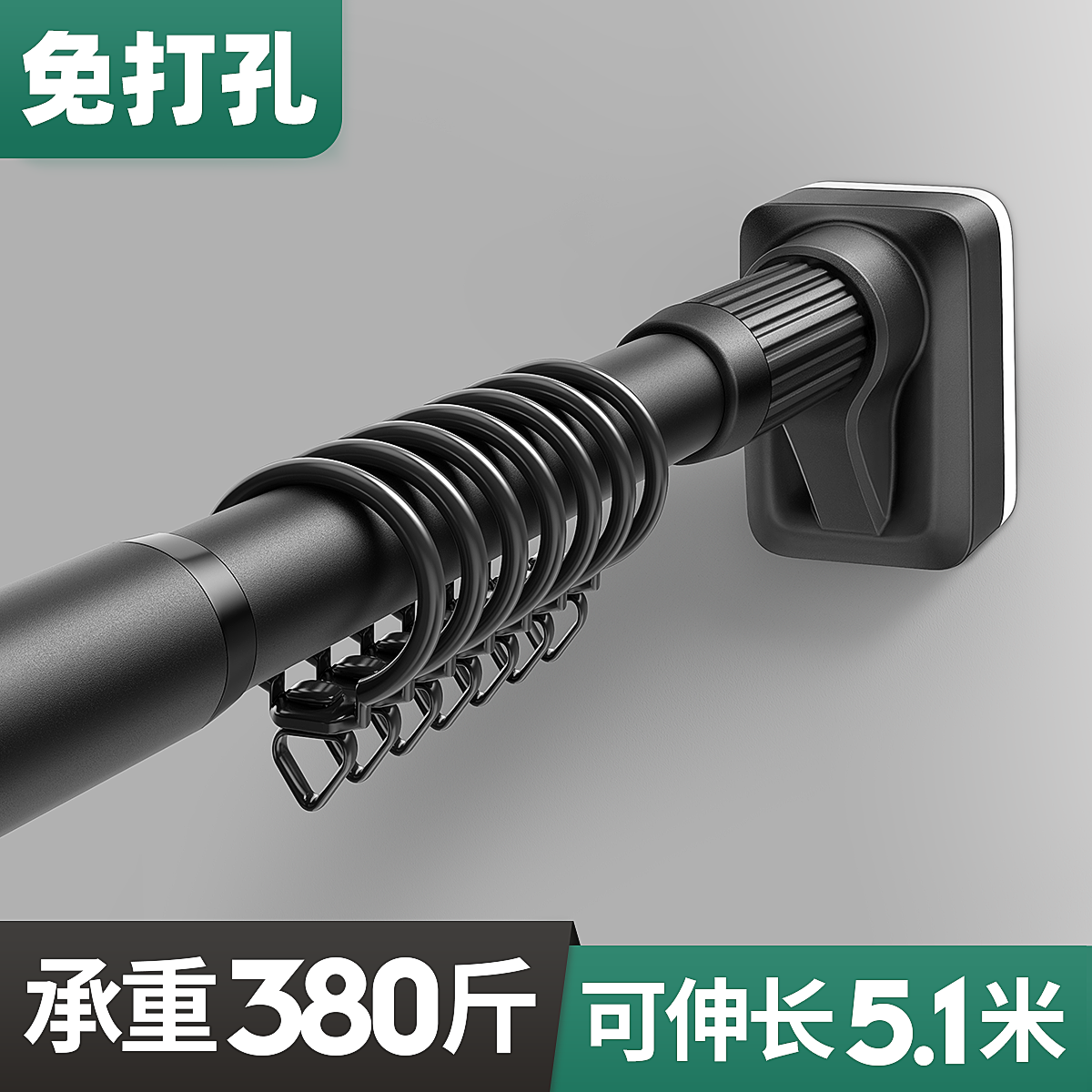 免打孔遮光窗帘罗马杆轨道静音挂钩式滑轨阳台窗帘扣环滑轮伸缩杆