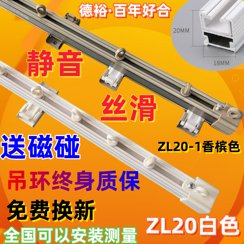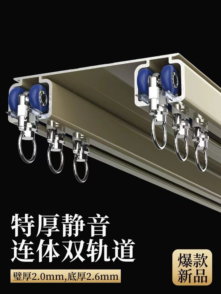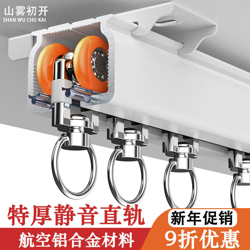 窗帘轨道双轨静音单轨铝合金超厚导轨滑轨挂钩式弯轨直轨飘窗侧装