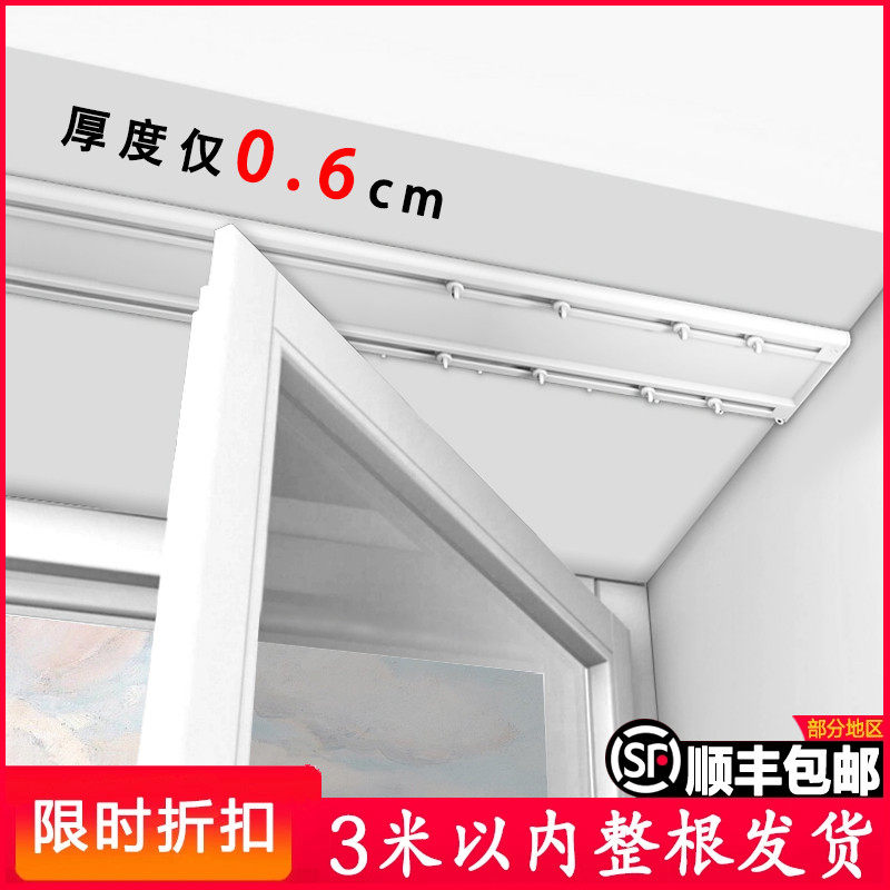 超薄窗帘轨道顶装极窄飘窗内开窗专用滑轨免打孔隐形极薄双轨静音