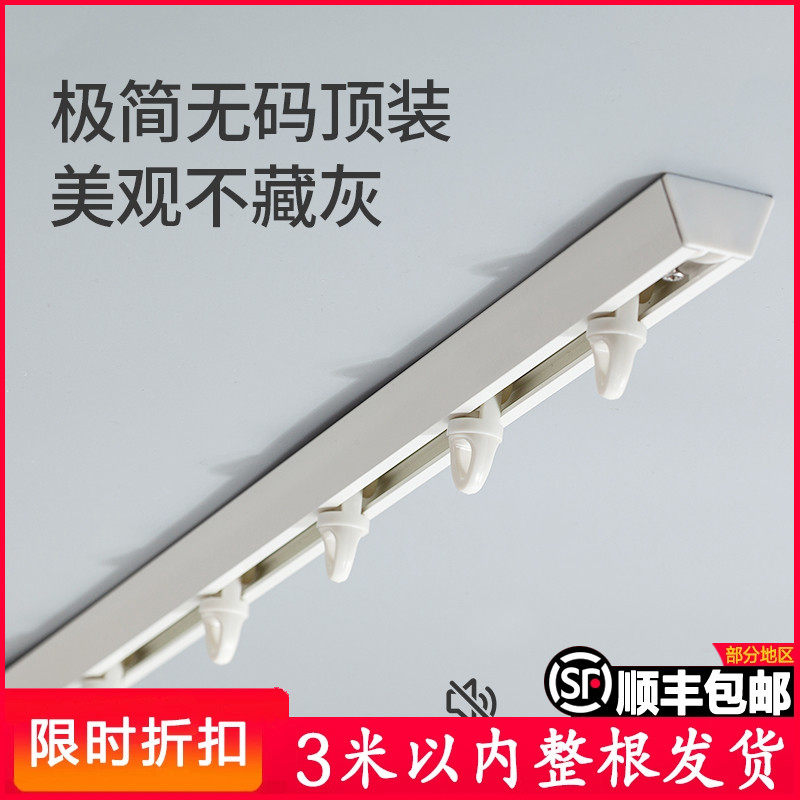 免打孔窗帘轨道顶装静音滑轨极窄超薄隐形轨道铝合金单双轨内开窗