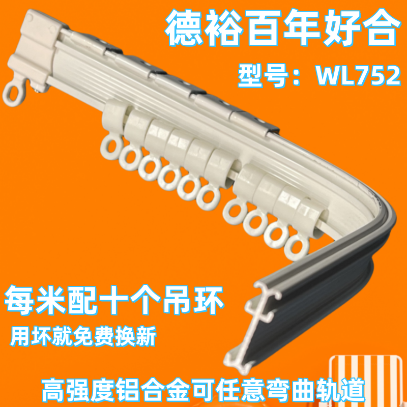 德裕百年好合WL75-2 铝合金可任意弯曲静音顺滑窗帘轨道 飘窗顶装