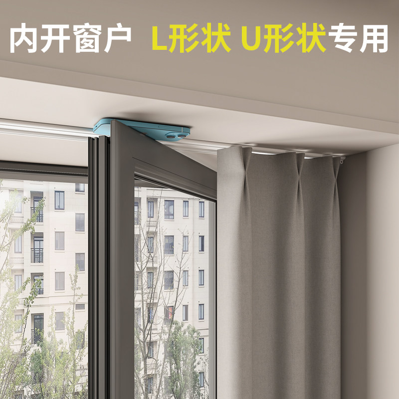 u型L型窗帘可弯轨道滑轮顶侧装单双轨滑轨铝合金静音飘窗阳台90度