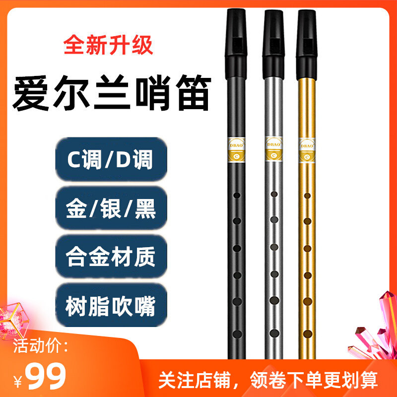 爱尔兰哨笛d调c调树脂吹嘴合金笛直管西洋乐器6孔竖笛初学者入门