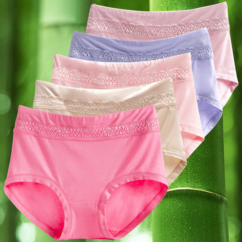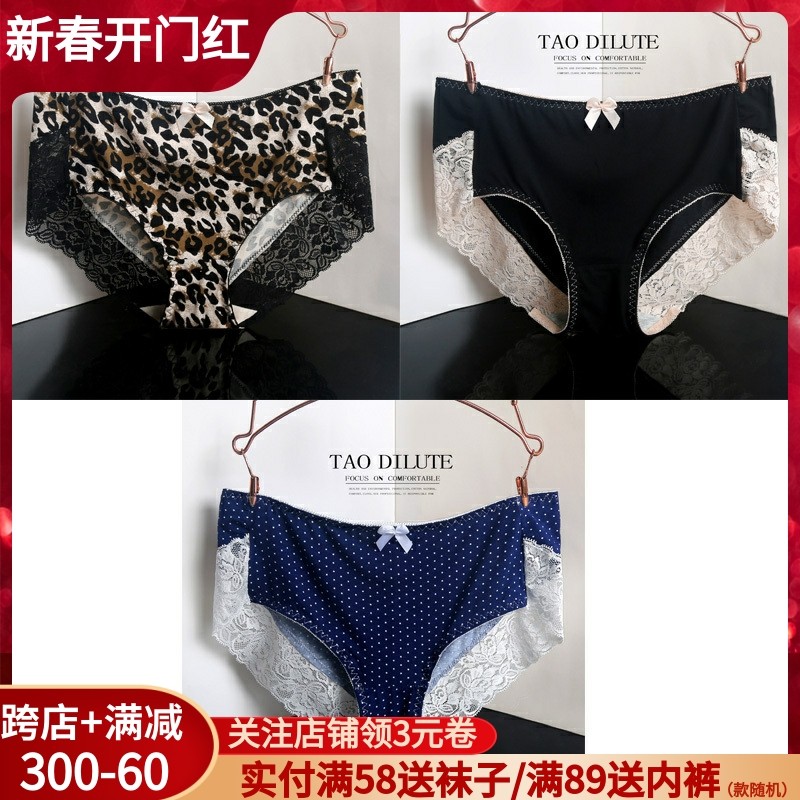 5条装竹炭纤维中腰内裤女莫代尔胖MM大码无痕性感蕾丝高腰三角裤