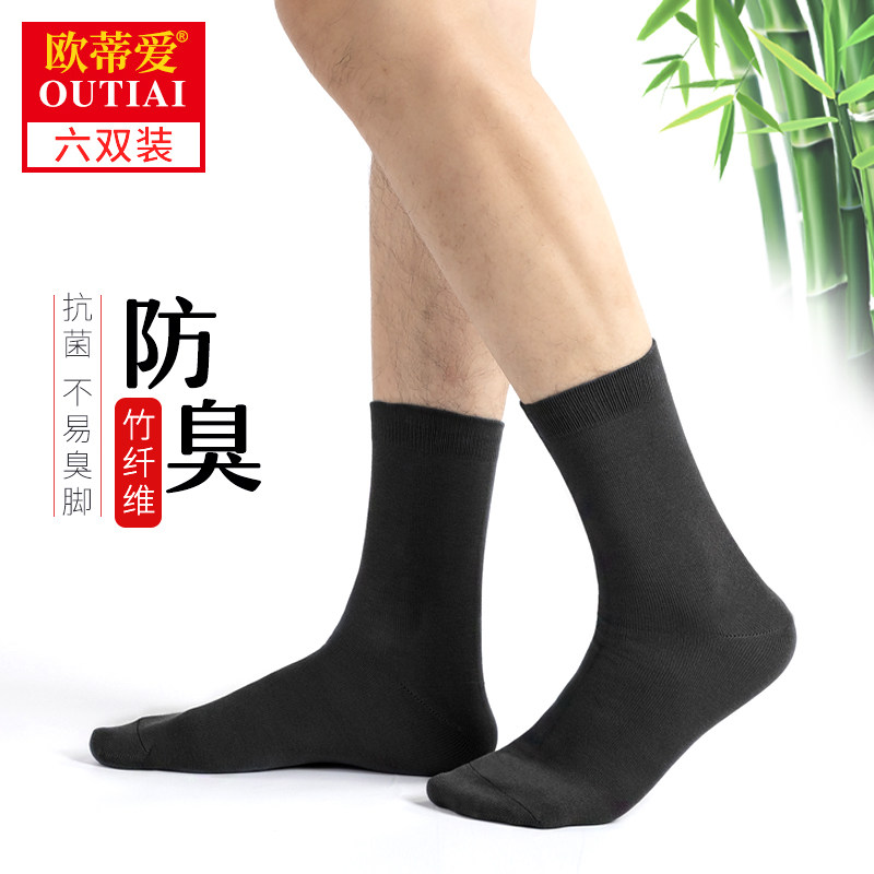 欧蒂爱竹纤维袜子男中筒秋冬季厚款竹炭防臭袜男士黑色商务长筒袜