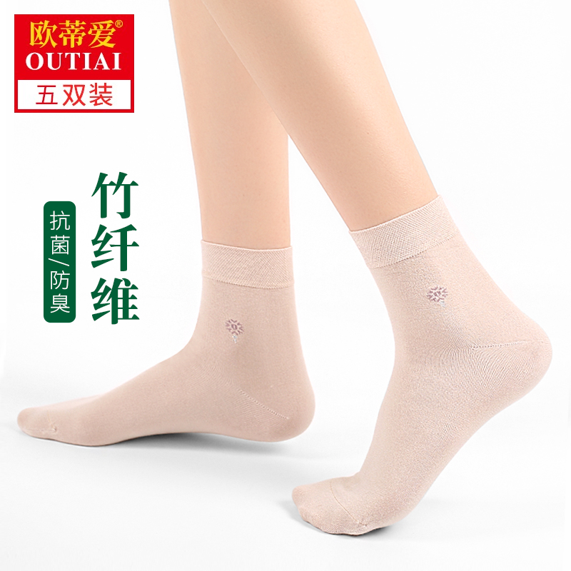 欧蒂爱竹纤维袜子女士春秋款透气竹炭抑菌防臭秋季绢感提花中筒袜