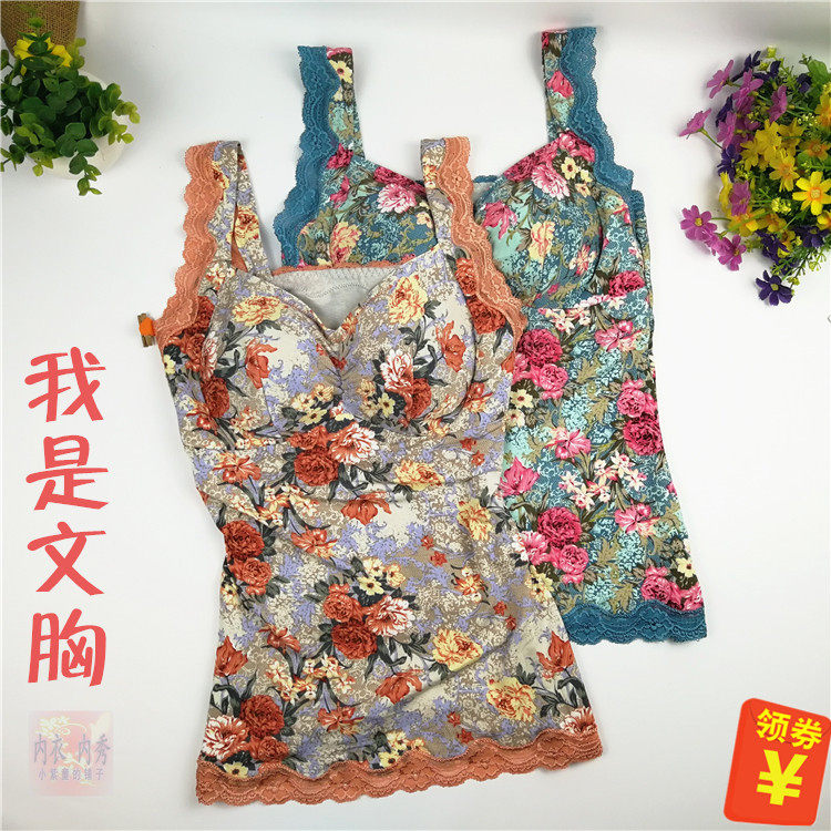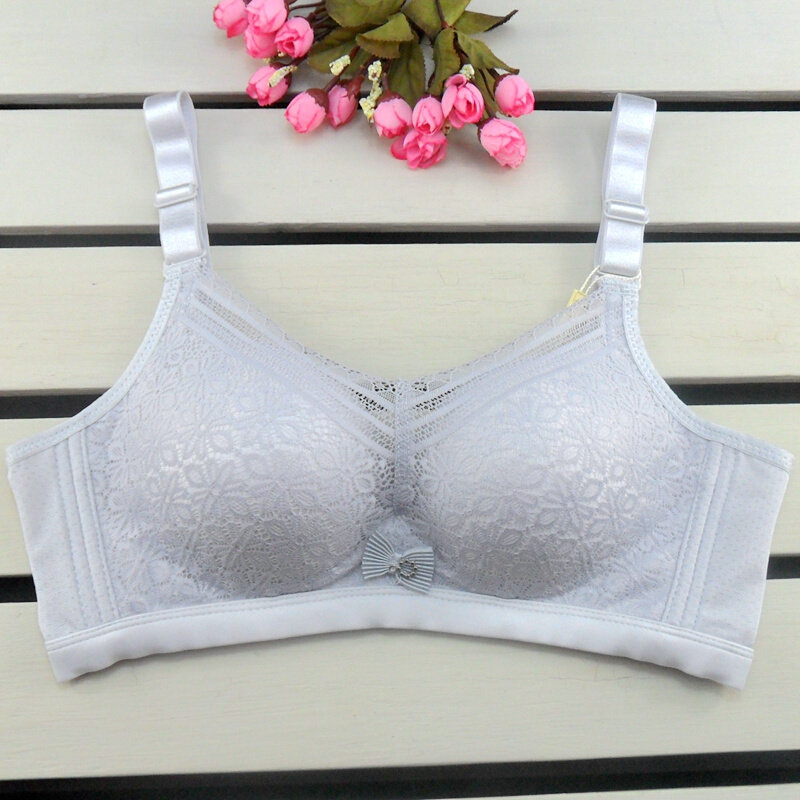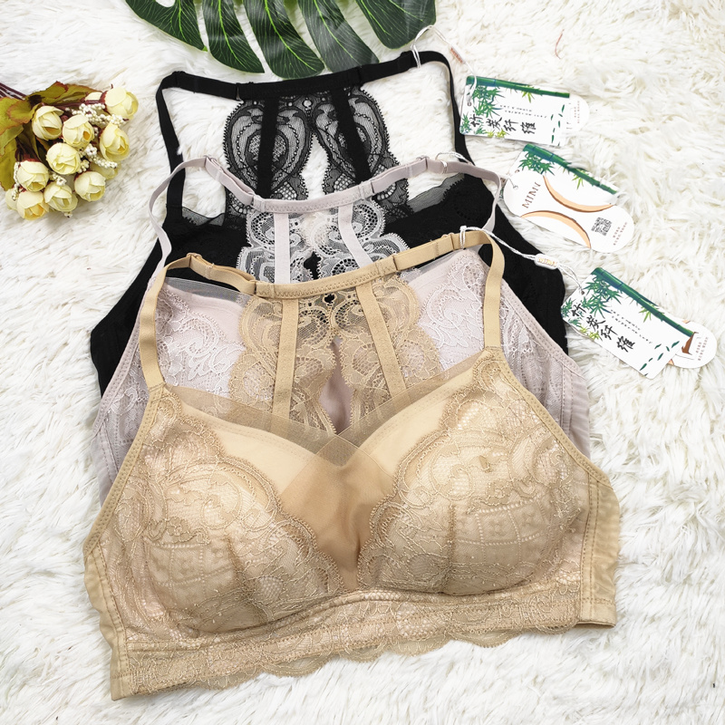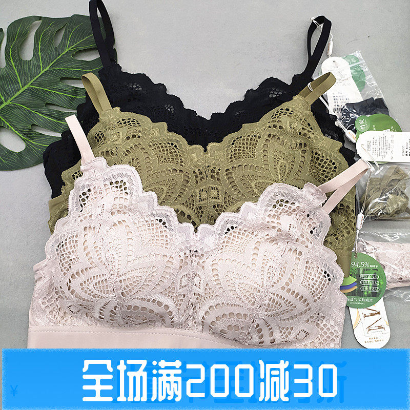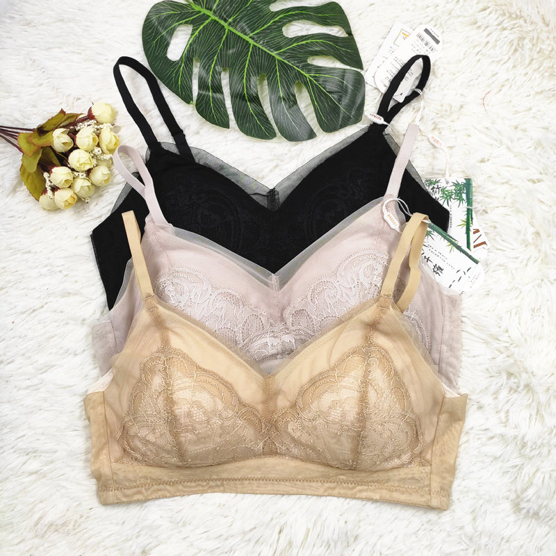 竹炭纤维文胸蕾丝无钢圈杯棉上托聚拢内衣女士胸罩胸围柔软中厚