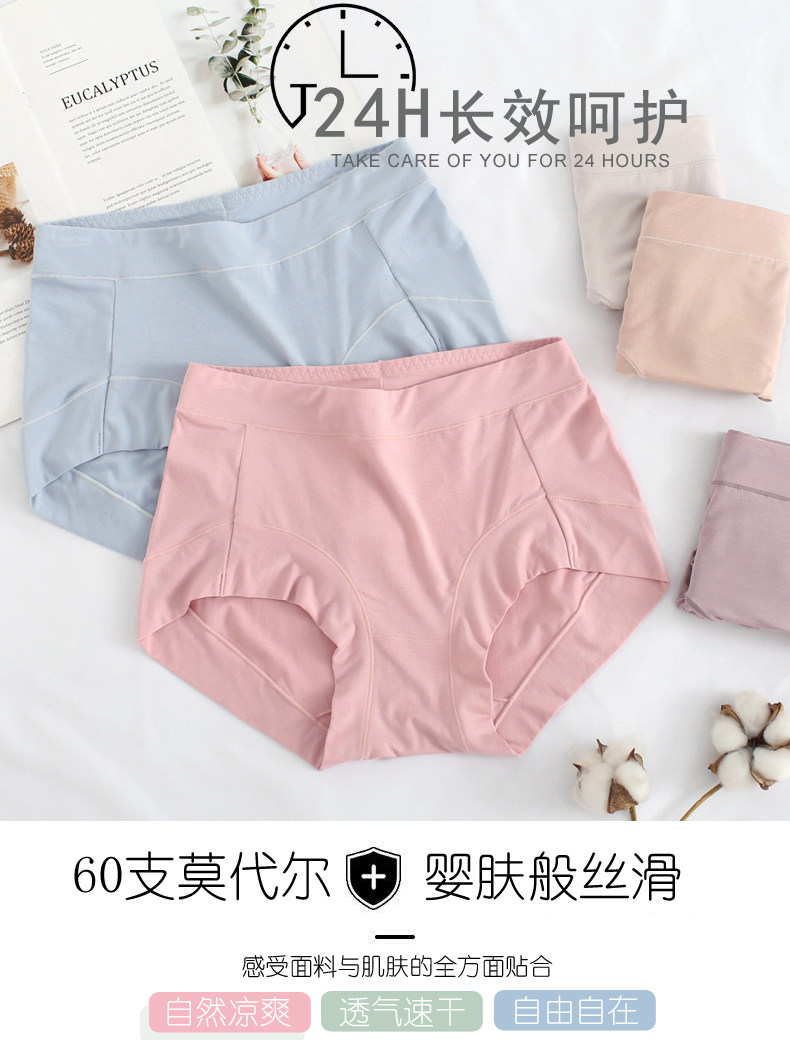 5条装中腰内裤女莫代尔棉简约大码吸湿抗菌舒适竹炭纤维三角裤女