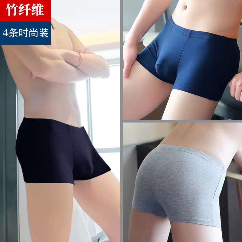 买3送1夏季男士内裤冰丝透气舒适带气孔竹炭纤维抗菌四角裤平角裤
