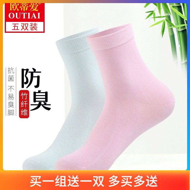 欧蒂爱竹纤维袜子女防臭袜冬季厚女士中筒袜竹炭抗菌秋冬长棉袜女