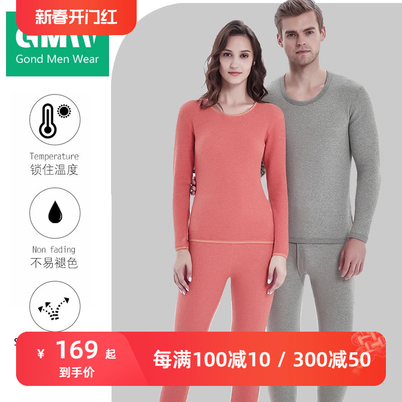 竹炭纤维加绒加厚保暖内衣男里层纯棉女士双层中老年内穿加厚套装